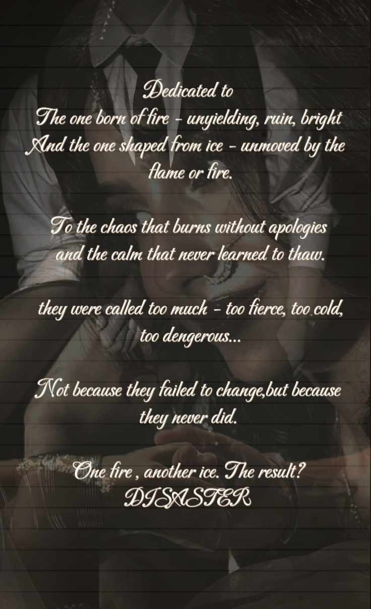 The ice. A calm and composed man with bad boy vibes. A calm and peaceful soul hidden under a tough face and sharp features which can make people fall in love at first sight. Never loses his patience at least till he meets a fire soul.